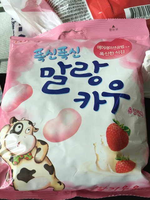 Delicious chewy strawberry milk candy I found at a Korean supermarket. Complete